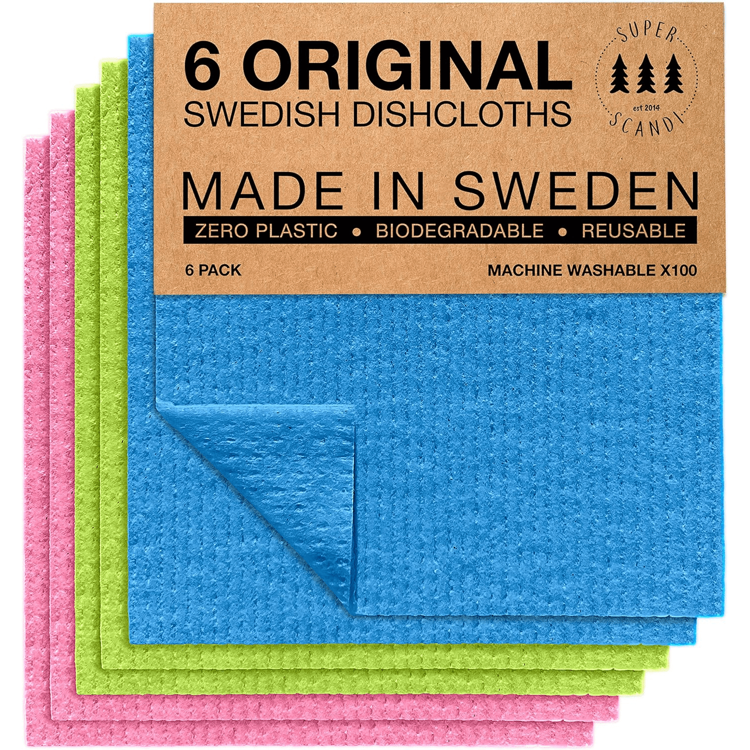 6 Bayetas 100% biodegradables y compostables. Trapos de cocina reutilizables, aptos para alimentos y sin plástico.